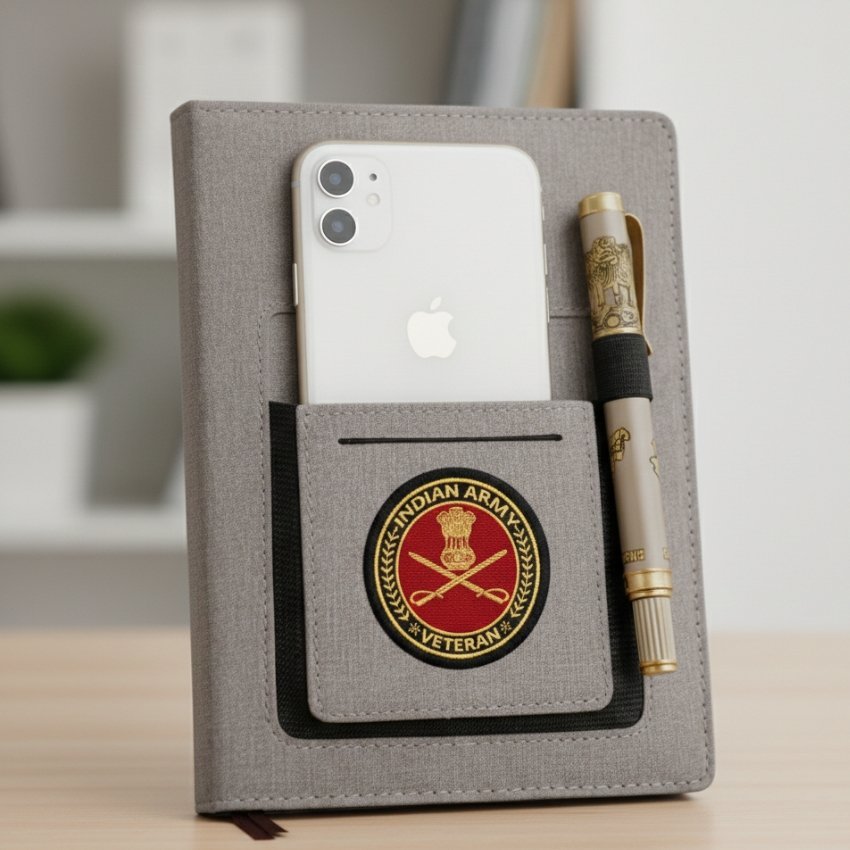 Indian Army Veteran Office Notebook with Phone & Pen Holder