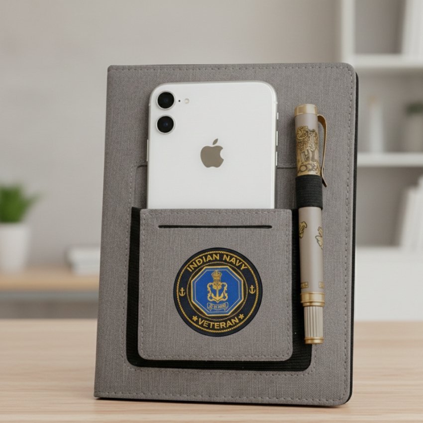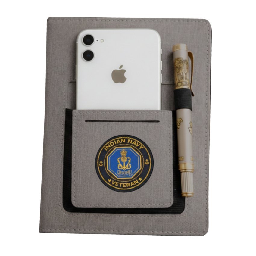 Indian Navy Veteran Office Notebook with Phone & Pen Holder